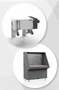 Le modèle SRF K-15 permet l’aspiration simultanée de deux postes de travail ou le traitement de fortes concentrations de fumée.